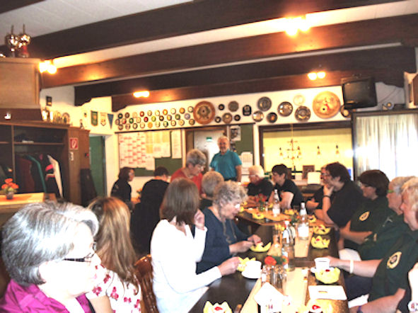 Weihnachtsfeier Am 29. November, traditionell wieder am Tag vor dem 1. Advent, begannen wir um 17:30 Uhr mit unserer Weihnachtsfeier. Zunächst erhoben sich alle Anwesenden zu einer Gedenkminute für alle unsere verstorbenen Vereinsmitglieder. Die Vertreterin des Weihnachtsmannes ließ nach dem Lied "Nikolaus komm in unser Haus", die Kinder zu sich kommen. Es waren wieder nur vier Kinder und ein Jugendlicher unter 18 Jahren. In der Bildergalerie sind ein paar Bilder hinterlegt. Ein Buffet war auch bestellt worden und stellte alle sehr zufrieden. Die Speisen waren sehr lecker und reichhaltig. Auch die profihafte Musikanlage, wieder von Erik zur Verfügung gestellt, brachte wieder eine angenehme Atmosphäre. Die Feier war sehr harmonisch und gemütlich. Auch die Zahl der Anwesenden war erfreulicherweise ähnlich wie im letzten Jahr. |